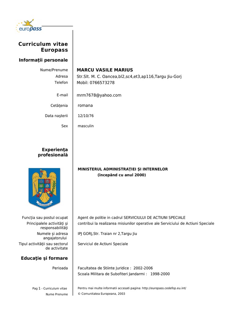Europass model cv romana necompletat download.
